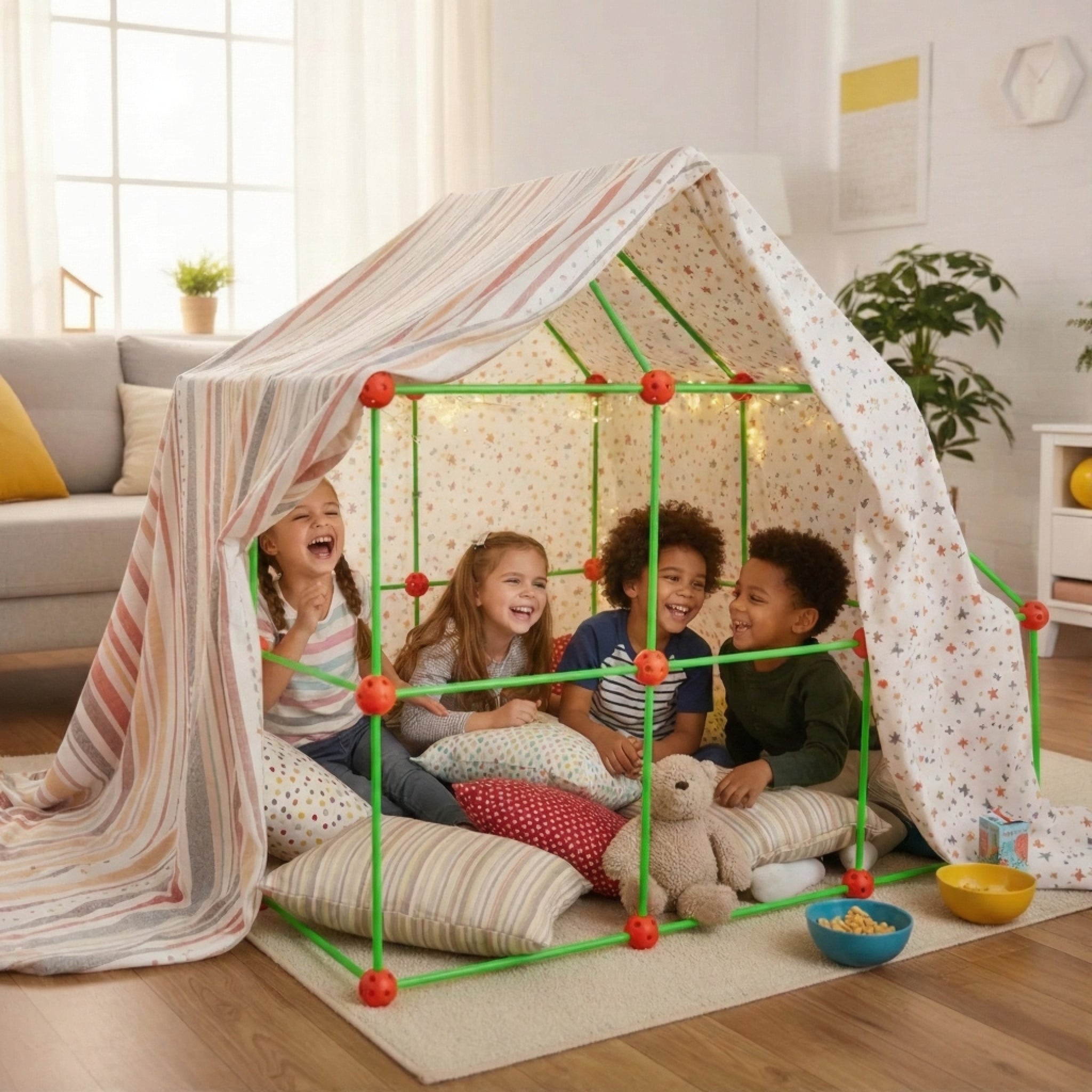 Oubliez les jouets fragiles et ennuyeux ! ImagiCabane s'assemble en quelques secondes de mille façons différentes grâce à son système de connexion intuitif. Il est robuste, ne s'effondre pas et libère la créativité. Le plaisir est instantané !